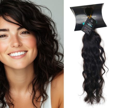 • középvastag szálú, fényes, selymes, puha, tömör, hidratált, lágy haj, póthaj.